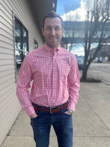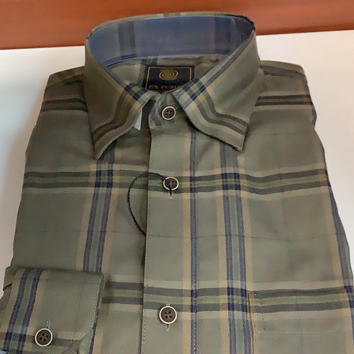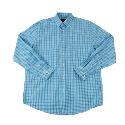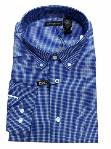 Cotton Traders Modern Fit Blue Window Pane Woven Long Sleeve Sport Shirt