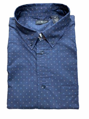 Cotton Traders Modern Fit Navy Star Woven Long Sleeve Sport Shirt