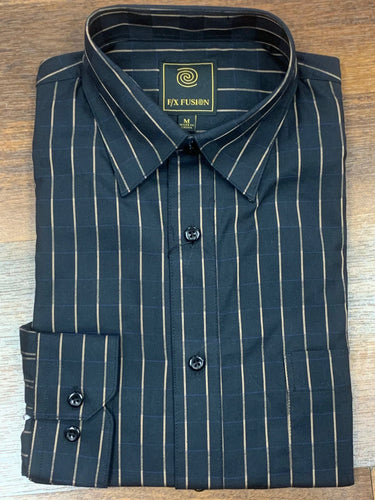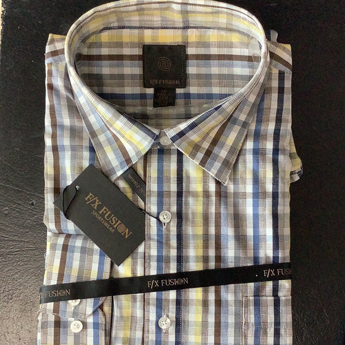 FX Fusion Blue Yellow Check Long Sleeve Sport Shirt