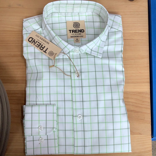 FX Fusion Long Sleeve Sport Shirt White Lime Check T702