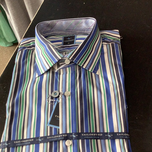 Tailorbyrd Blue Green Long Sleeve Sport Shirt