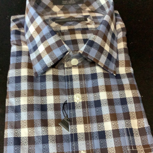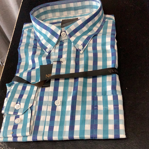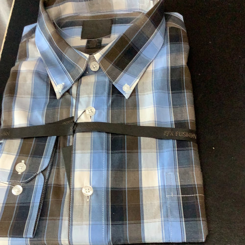 FX Fusion Blue/Brown Plaid Long Sleeve Sport Shirt