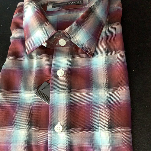 Damon Burgundy Plaid Long Sleeve Sport Shirt