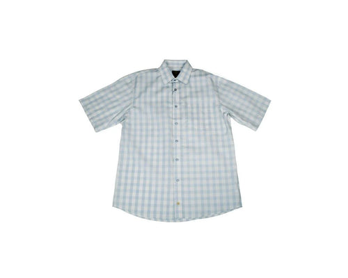 FX Fusion Light Blue/Tan Soft Check Short Sleeve Sport Shirt - D2021