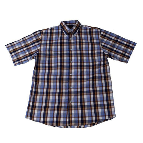 ROptions Short Sleeve Summer Light Grid Plaid Shirt