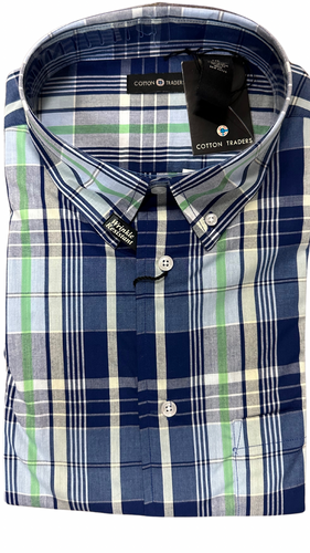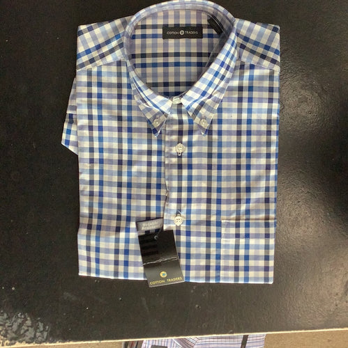 Cotton Traders Royal Check Short Sleeve Sport Shirt