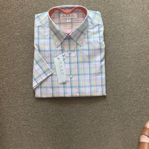 FX Fusion Blue/Purple Plaid Short Sleeve Sport Shirt