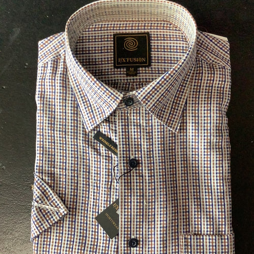 FX Fusion Navy Brown Short Sleeve Sport Shirt