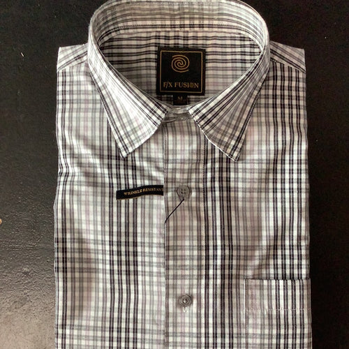 FX Fusion Black/Grey Plaid Shirt Sleeve Sport Shirt