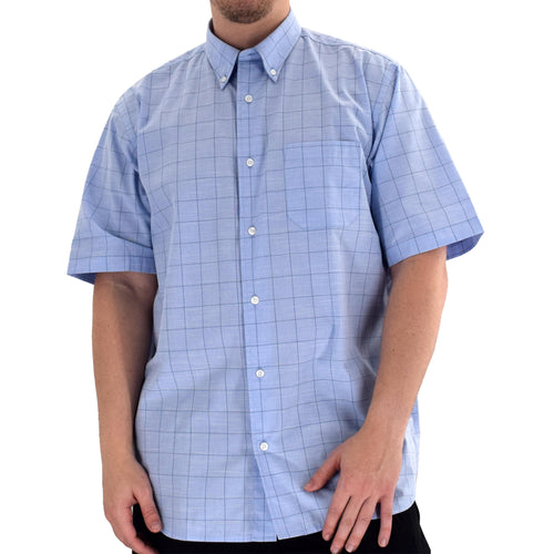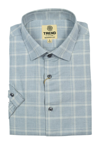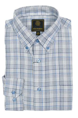 FX Fusion Grey/Blue Textured Check Short Sleeve Sport Shirt