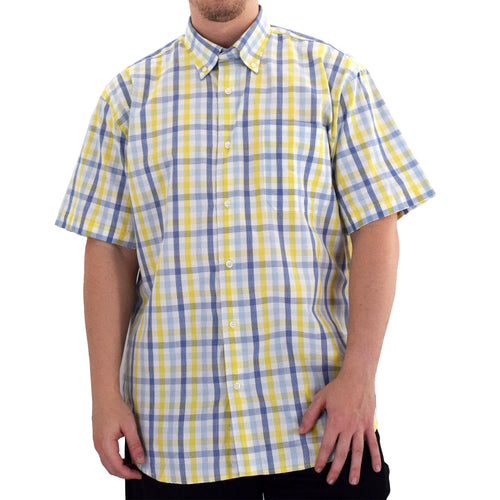 Cotton Traders Yellow/Blue Short Sleeve Sport Shirt