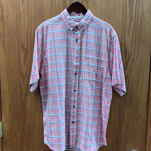 Basic Options Pink Plaid Short Sleeve Sport Shirt