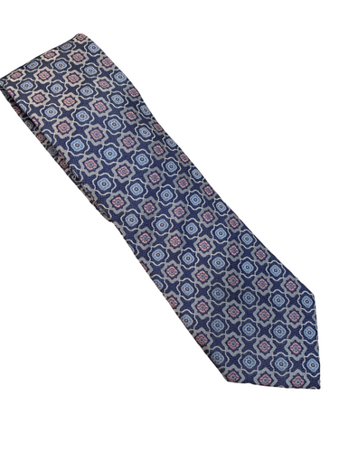 Zianetti Silk Tie Blue/Grey/Pink Geometric Pattern